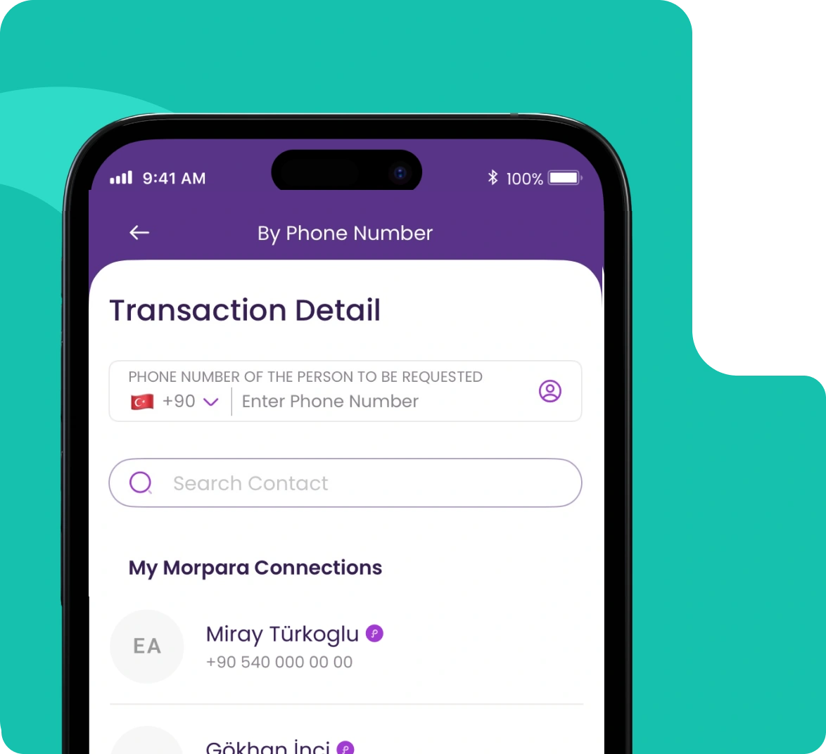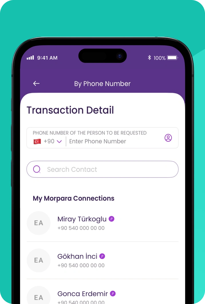 You can quickly request money from Morpara users registered in your contacts by phone number. Morpara also offers you the convenience of requesting money from Morpara users who are not registered in your contacts with their account numbers!
